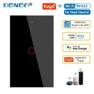 라이프 스위치 스마트 투야 앱 구글 중립 없는 알렉사 브라질 스위치와 스마트 터치 센서 US EU 와이파이 홈 표준 작동 RF433, 662 WIFI BLACK 01, 1개