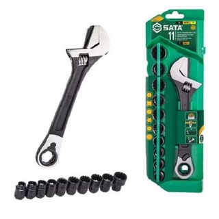 사타 3in1 블랙 조절 렌치 멀티 몽키 스패너 소켓세트 11p ST09000, 1세트, 본품(배터리없음)