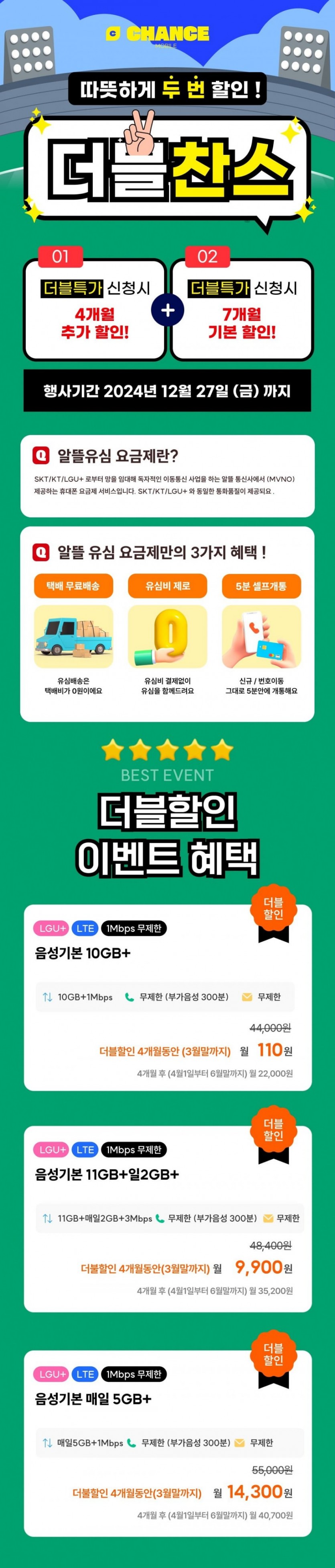 찬스모바일 초특가 작성자 정보 관리자 작성 작성일 2024.12.23 19:53 컨텐츠 정보 1,974 조회 0 추천 0 비추천 목록 본문 찬스모바일쉽고 빠른 개통, 통신비 절감의 찬스!https://chancemobile.co.kr/view/distributor/phone_plan_distributor.aspx?poscd=bcd188635790aefcd14ba77b3f85b1c0 알뜰폰 10GB+1MPS 3월30일까지 100원알뜰폰 11G+2GB+3MBPS 3월30일까지 9900원 . 100기가+5mps . 14000원 . 3월까지쓰고 4월에 번호이동 하심 될거 같네요.그리고 테더링 필요하신분은 엘지 특성상 E심 섞어서 하는 것도 추천 드립니다. E심 개통도 가능하다고합니다.#viral#fyp#tiktok#comedy 0 추천 0 비추천 SNS 공유 관련자료 링크 https://chancemobile.co.kr/view/distributor/phone_plan_distributor.aspx?poscd=bcd188635790aefcd14ba77b3f85b1c0 807 회 연결 이전 리쏘 영원씨 안마의자 작성일 2025.02.08 21:35 다음 “나야, 흑백요리사” 출연진들의 식당 리스트 총정리! 작성일 2024.10.11 16:23 댓글 0 등록된 댓글이 없습니다. 로그인한 회원만 댓글 등록이 가능합니다. 목록