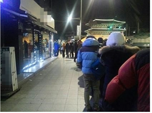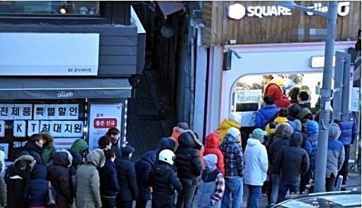 추운 새벽 판매점에서 보낸 문자를 받은 손님들이 모여든 것이죠
